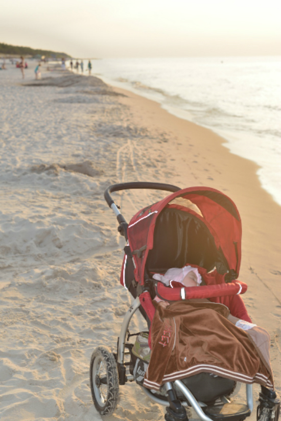 Trzykrotne wczasy nad polskim morzem z brodzeniem w głębokim piasku i nawet podmywanie morską wodą, co wózek o dziwo zniósł bez żadnej awarii i rdzy.